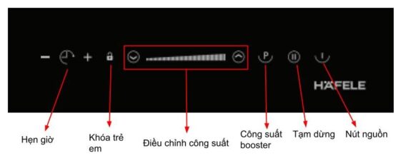 Dưới đây là ý nghĩa các ký hiệu trên bảng điều khiển cảm ứng của bếp từ 2 vùng nấu độc lập Hafele HC-I3732A: