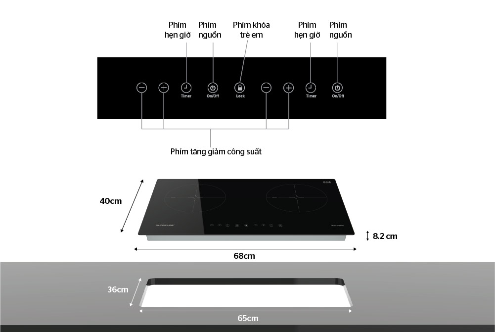 Sản phẩm có bảng điều khiển cảm ứng hiện đại, chung cho 2 vùng nấu, dễ dàng sử dụng. Chỉ vài thao tác chạm nhẹ tay trên sản phẩm, bạn đã lựa chọn được chế độ hoạt động mong muốn.
