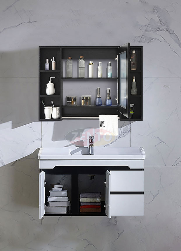 - Bộ tủ, chậu, kệ gương Lavabo Black & White ZT-LV882F là sự kết hợp hoàn hảo giữa chậu rửa lavabo, tủ đựng đồ & kệ gương không chỉ mang đến cho không gian phòng tắm gia đình bạn một phong cách mới lạ đầy sáng tạo mà còn giúp bạn sắp xếp các vật dụng phòng tắm một cách gọn gàng khoa học lại cực kỳ tiết kiệm diện tích.