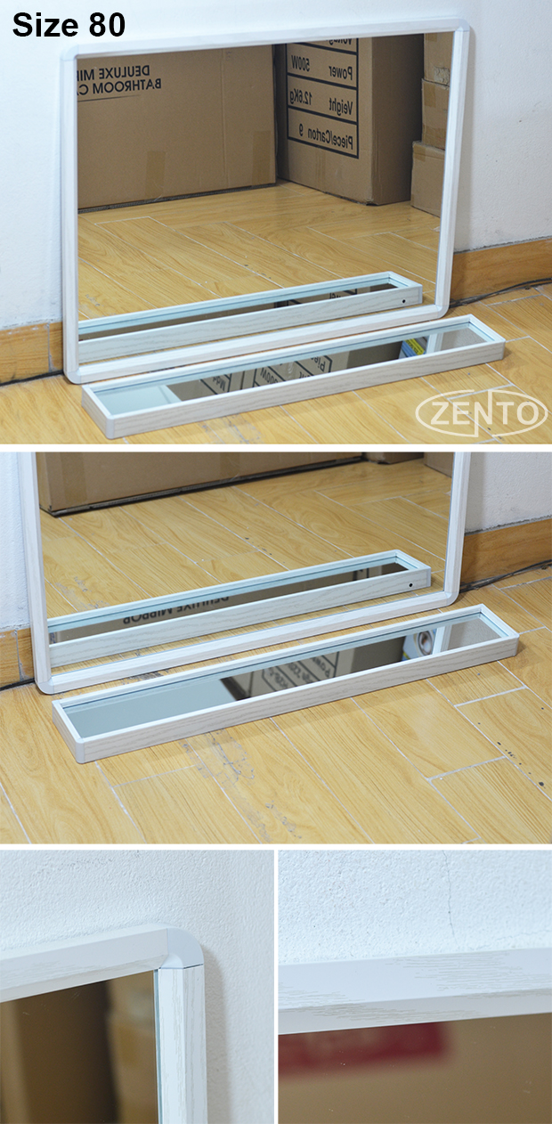 - Kệ gương nhỏ gọn chắc chắn có gờ nhô cao giúp các vật dụng bên trên không bị rơi vỡ.