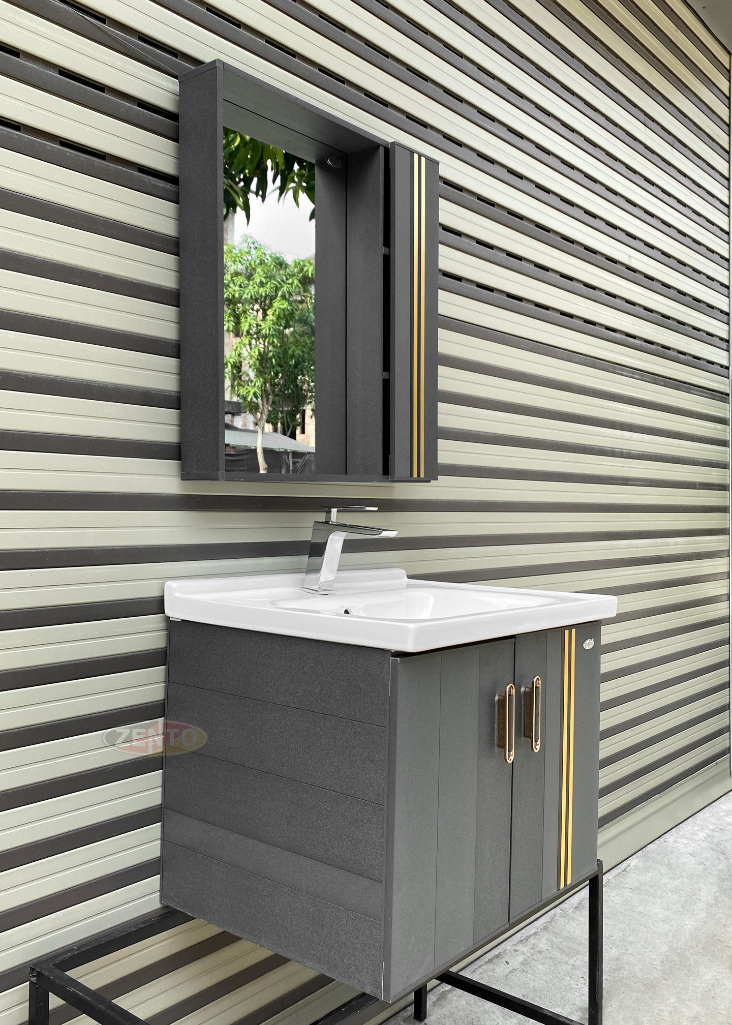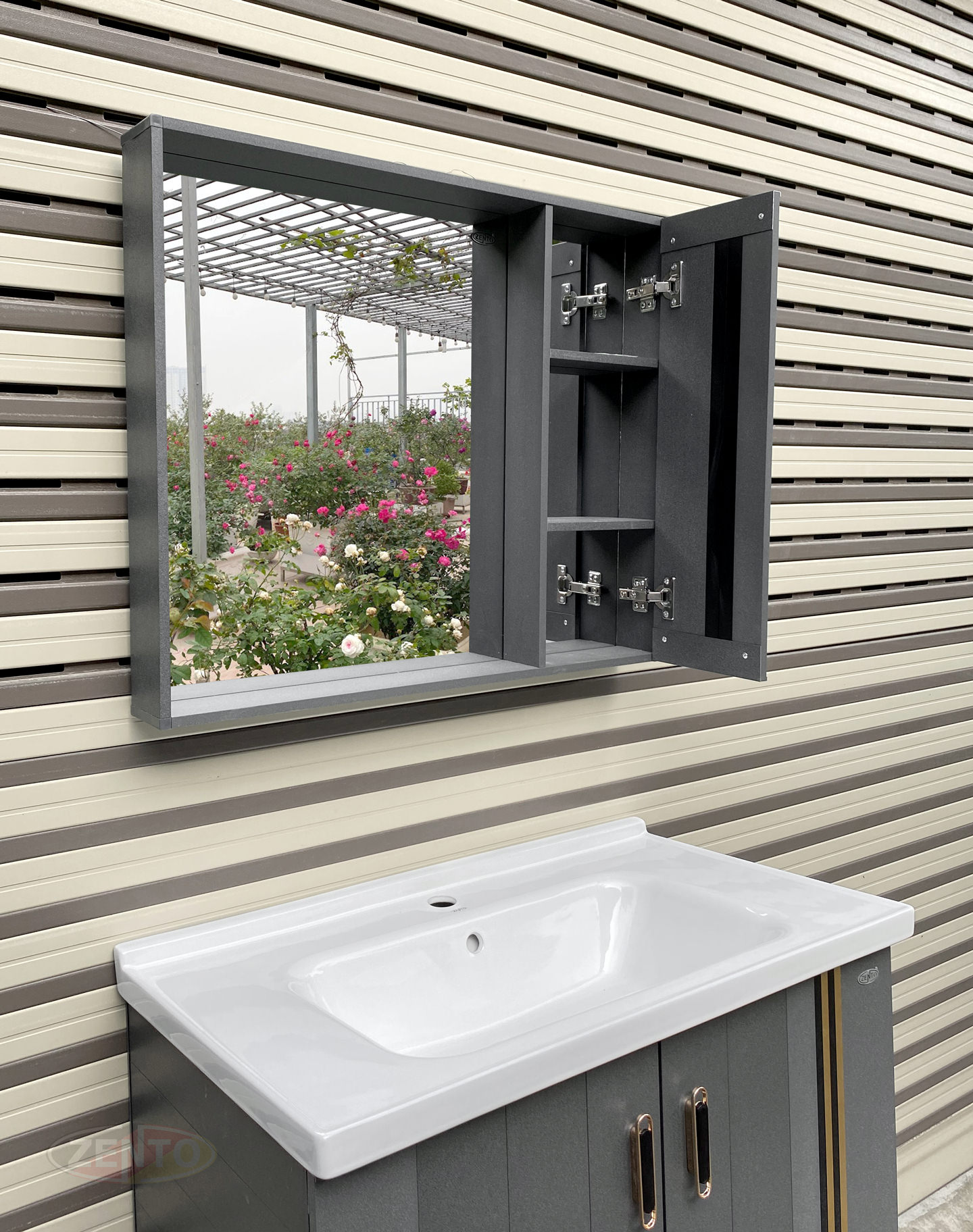 - Tủ chậu & kệ gương được làm từ hợp kim nhôm với kết cấu dày dặn chắc chắn, không hoen gỉ trong môi trường nước, đảm bảo độ bền lâu dài.