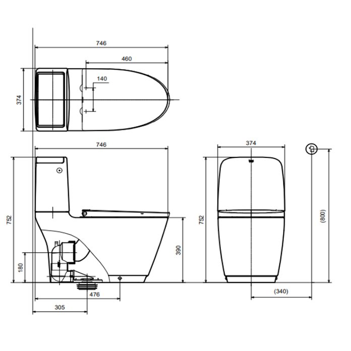 - Kích thước (DxRxC) : 746 x 376 x 752 mm