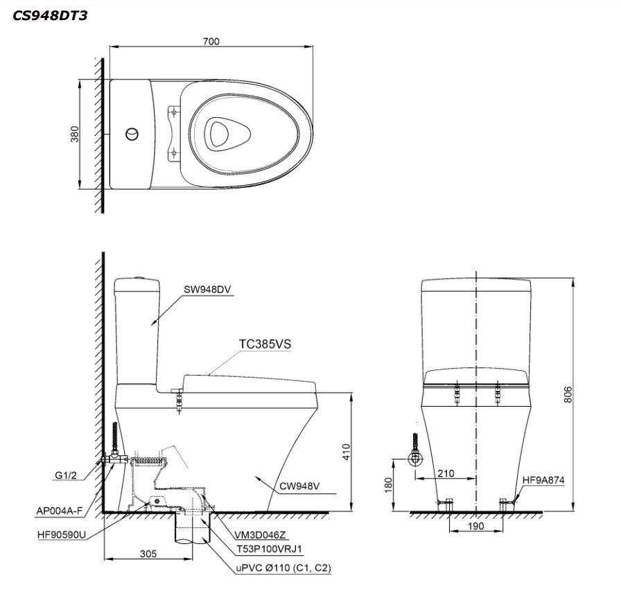 - Tên sản phẩm: Bồn cầu hai khối TOTO