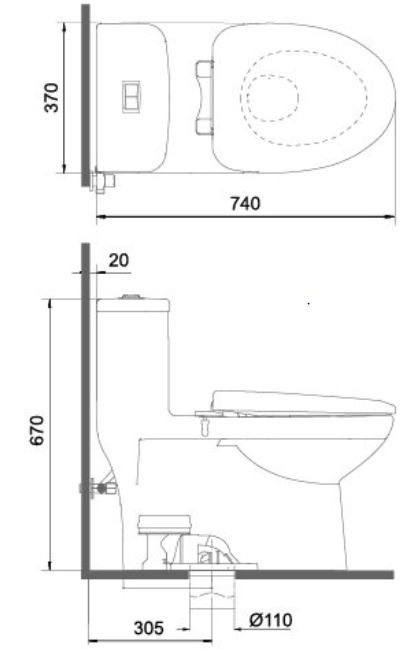- Bồn cầu Viglacera MK2 một khối (két liền) kiểu dáng đặc biệt