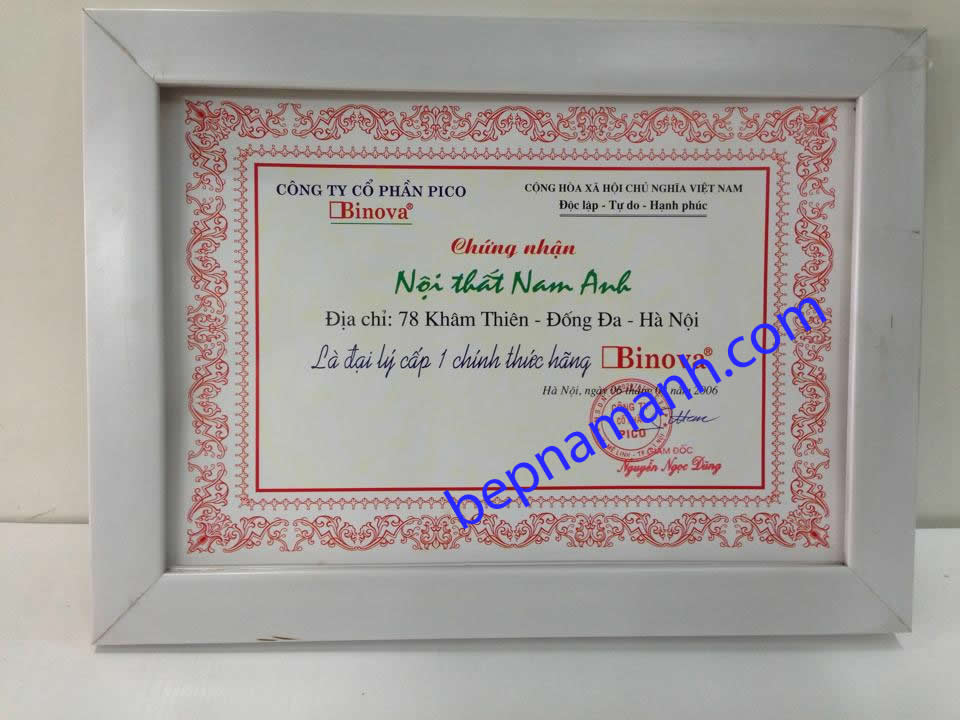Ảnh giấy chứng nhận Nội Thất Kho Tổng Gia Dụng là đại lý cấp I của thương hiệu Binova do công ty Binova cung cấp